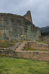 When we got to San Jose we were very happy to see the jeep. It was drizzling so we all piled in and drove down to Ingapirca. The ruins at Ingapirca are an amalgam of a previous culture the Canaris, who had built a temple on a prominent rock, and the Inca who rebuilt it with an entire complex round it. We had a quick bite to eat and then walked round the ruins.
