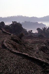 Apart from the sheer terror the trip had no real highlights until we reached the edge of the Kodagu region. Literally within the space of a few metres the unordered and squalid mess of the Indian countryside vanished to be replaced with well kept fields and groves of banana trees. As we got closer to Madikeri the countryside became more mountainous and the banana trees were replaced by coffee bushes. By some cunning timing we had arrived during the few days when the coffee was in bloom so we spent the last part of the journey taking in the view of miles upon miles of mountain slopes covered with millions of white flowers. We were also treated to the quite overpowering aroma of the coffee bloom, which was a nice break for our noses.