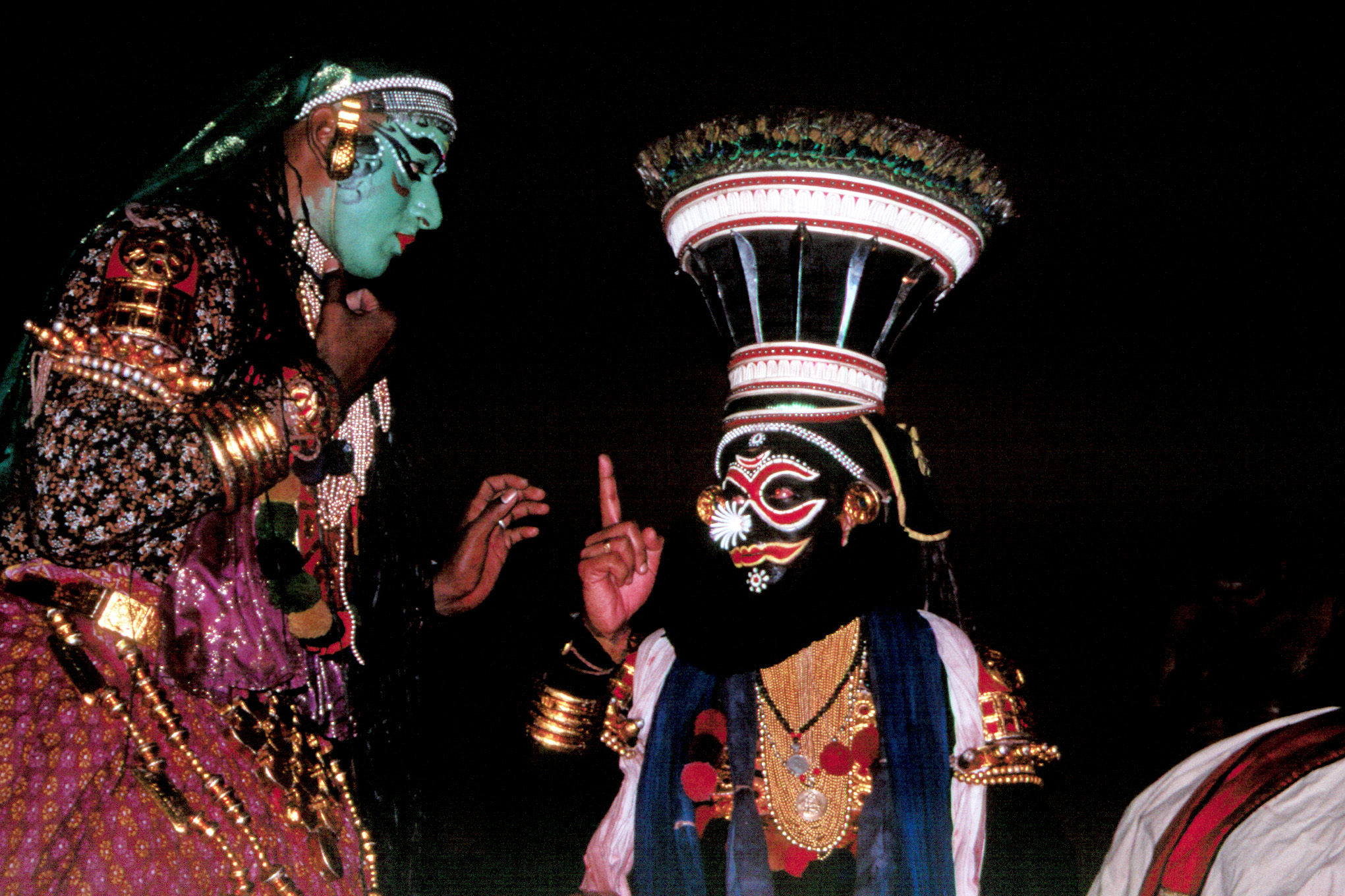 The performance itself benefited greatly from the actors' explanation. We had a photocopied outline of the story in English. It was taken from the Mahabharata and was about Shiva being disguised as a barbarian and having a fight with a hunter for killing a pig. The costumes were amazing and the music, some pretty intensive rhythmic drumming accompanied by singing, was as thrilling as the acting. We had an excellent time and were able to follow a lot of the action even with our limited understanding.