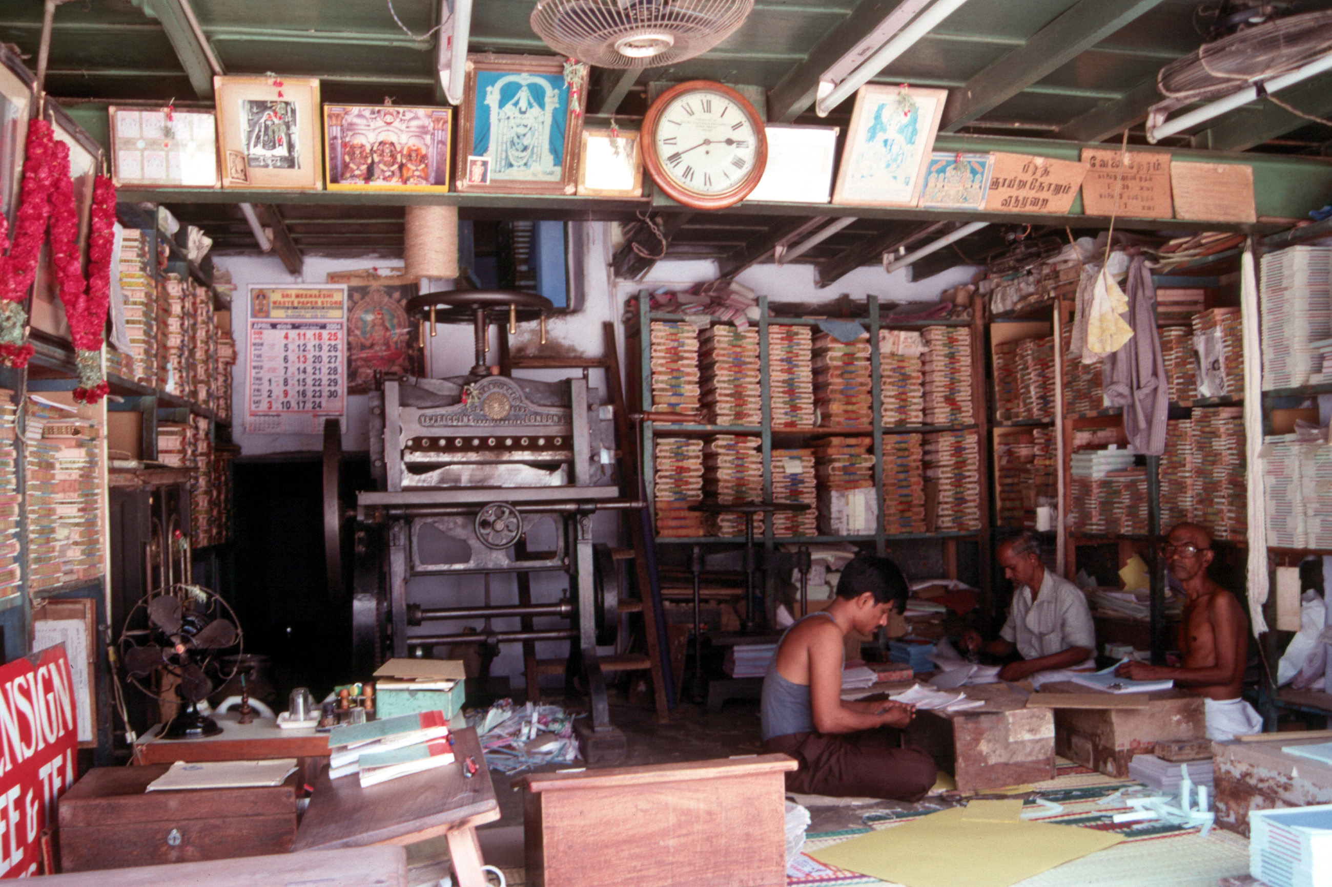 When we finally got to the temple we found that for no apparent reason it was not open that afternoon. However it looked very dilapidated so we were not sure that we had missed out on much. So we carried on exploring the streets. One great find we made was a book binding shop. It had a crazy old wrought iron press from Oxford and a bunch of guys removing paper from cheap exercise books, stamping a page number on each page then binding them in a decorated hardback cover. We struggled a bit to understand what they were doing but the end product was nice so we ended up buying one in the end.