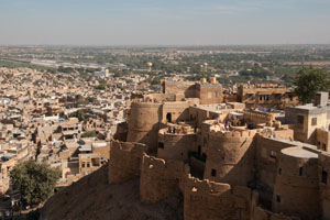 We were keen to have a walk after sitting down for so long and set off for Jaisalmer Fort which was only ten minutes walk away. The fort is a walled city on top of a rock in the middle of the desert. Once you navigate the various gates you find yourself in a central square from which a maze of tiny alleys radiates. Going down through them you pass hundreds of tiny shops from which vendors try to attract your attention. "Such lovely hair" one woman called out to Anna "it's just like noodles".