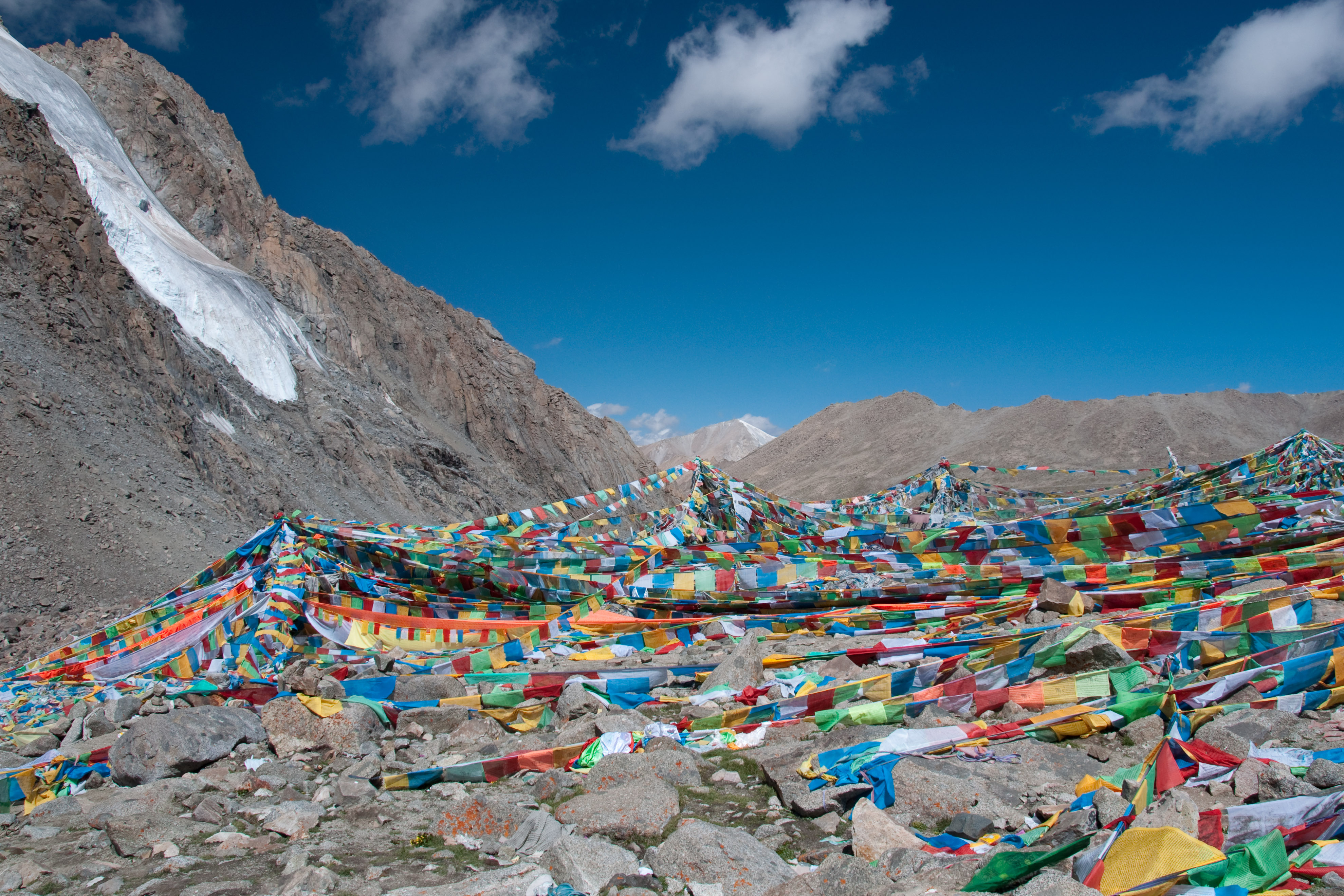 The top of the pass was both glorious and upsetting. The amount of rubbish that had been jettisoned was extreme and included a wide variety of items from mini juice boxes to aerosol cans which had once held oxygen. However we attempted to ignore this and set ourselves the task of securing some prayer flags which Anna had bought up with her. They were in good company, the entire site was covered in them.