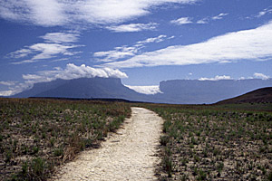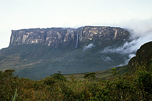 The next day we were still no fitter but the trek up to "base camp" was a bit more interesting. We worked our way along a ridge with rainforests either side and steadily climbed up to a small clearing below the "ramp" that goes up the side of Roraima. There we met a group of people on their way down and found out that the conditions on top were not ideal. Apparently many parties, mostly Venezuelans on their Easter holidays, were already up there. As a result several groups had been forced to camp in sandy hollows which had filled up with water during the previous nights rain.